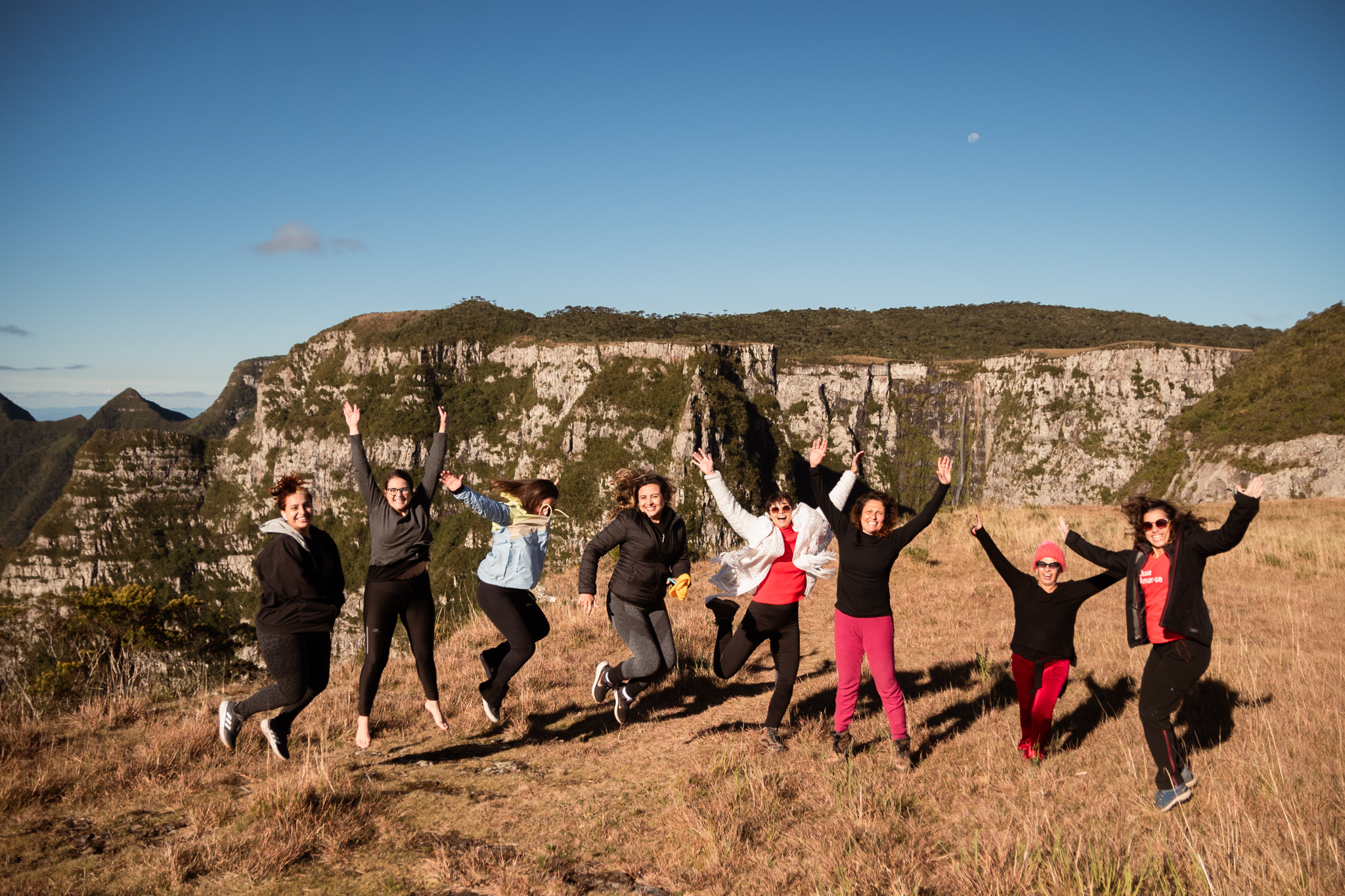 Canions, trilhas, mirantes, cachoeiras, chimarrão e papo de amigas, que nem parece que acabaram de se conhecer.
